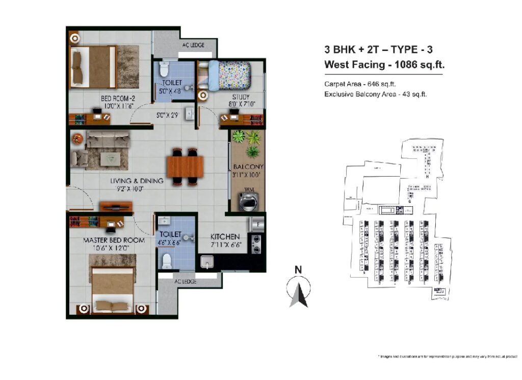 Area1086 Sq.Ft ( 101 Sq.Mt)